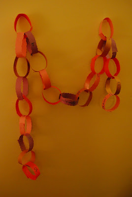 funny, i’ve never heard of using those to count down days. We always made those as decorations. 🙂 but I love your idea! I think we just might do that today. because Aunt Bethany is coming in a few days, and Grammie in a few weeks!!!