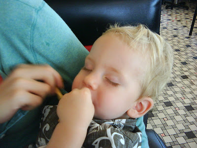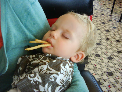 On One-Of-The-Days I didn’t feel like cooking, we headed to Steak ‘n Shake (yay, coupons). Benjamin fell asleep on the ride and we didn’t want him to miss the meal: