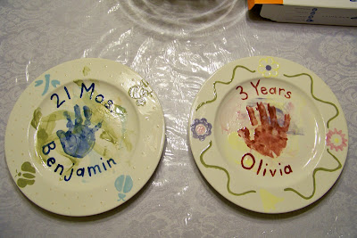 It was the end of a very long, busy, jam-packed weekend with family and Olivia was in a less-than-perfect mood. Benjamin did his handprint first and we was no trouble at all. Olivia flat out refused to open her hand.
