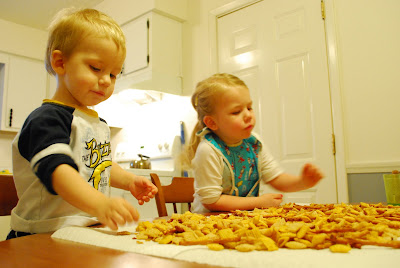 Making chex mix in the oven is a practice in patience. And, surprisingly, one my children handled quite well. This is their reward: