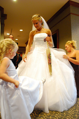 And then, finally, Olivia meets the BRIDE. And oh my GOODNESS, she has a new best friend. It made her DAY to see such a beautiful woman dressed in a real-live Princess Dress. It was like her own personal, life-sized Wedding Barbie. Everywhere Amanda (the bride) went, Olivia went. They were hand-in-hand for most of the day!