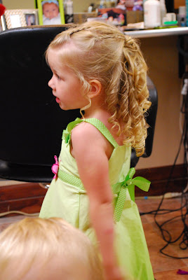 Then it was off to the hotel to sit for an hour before heading out to the church. That’s right, at least an hour and a half and two car-rides later… her hair still looked perfect! The credit goes to an extremely obedient four-year-(and-one-day)-old who didn’t move her head at ALL in the carseat. Oh, and hairspray. Lots of hairspray.