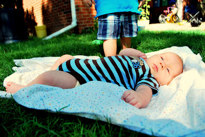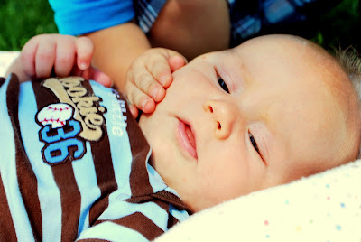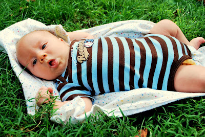 Soooo cute! I love it- I JOCK it, in fact- I will so be doing this tomorrow with the lil one. I love the grass grab shots!!! Beautiful boy. We both have chunkers!! Clark will be 5 mos. on Tuesday. Crazy.